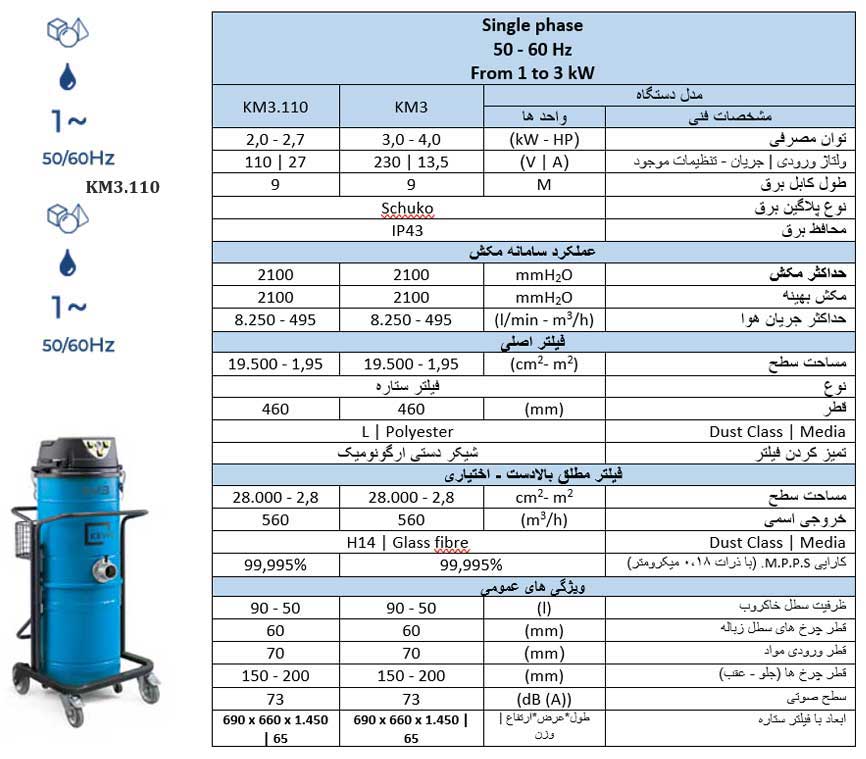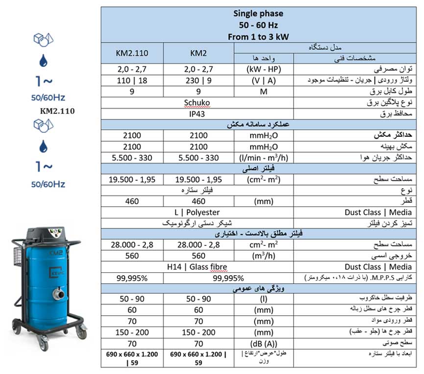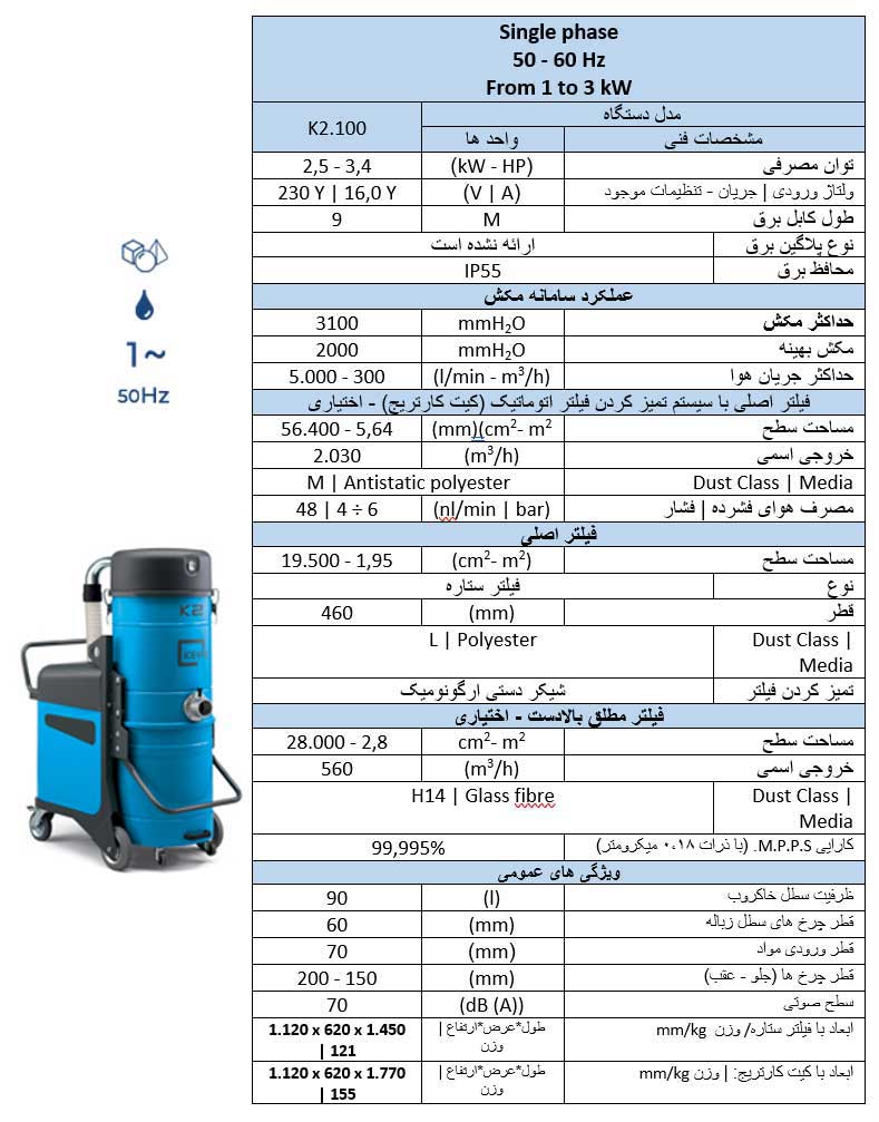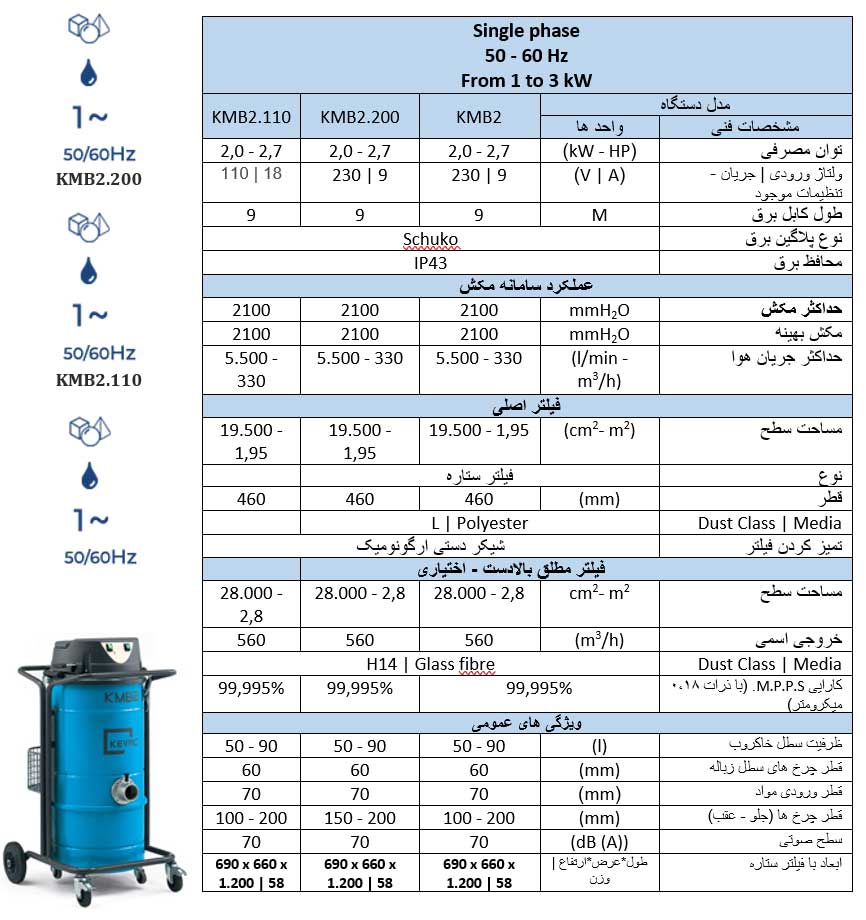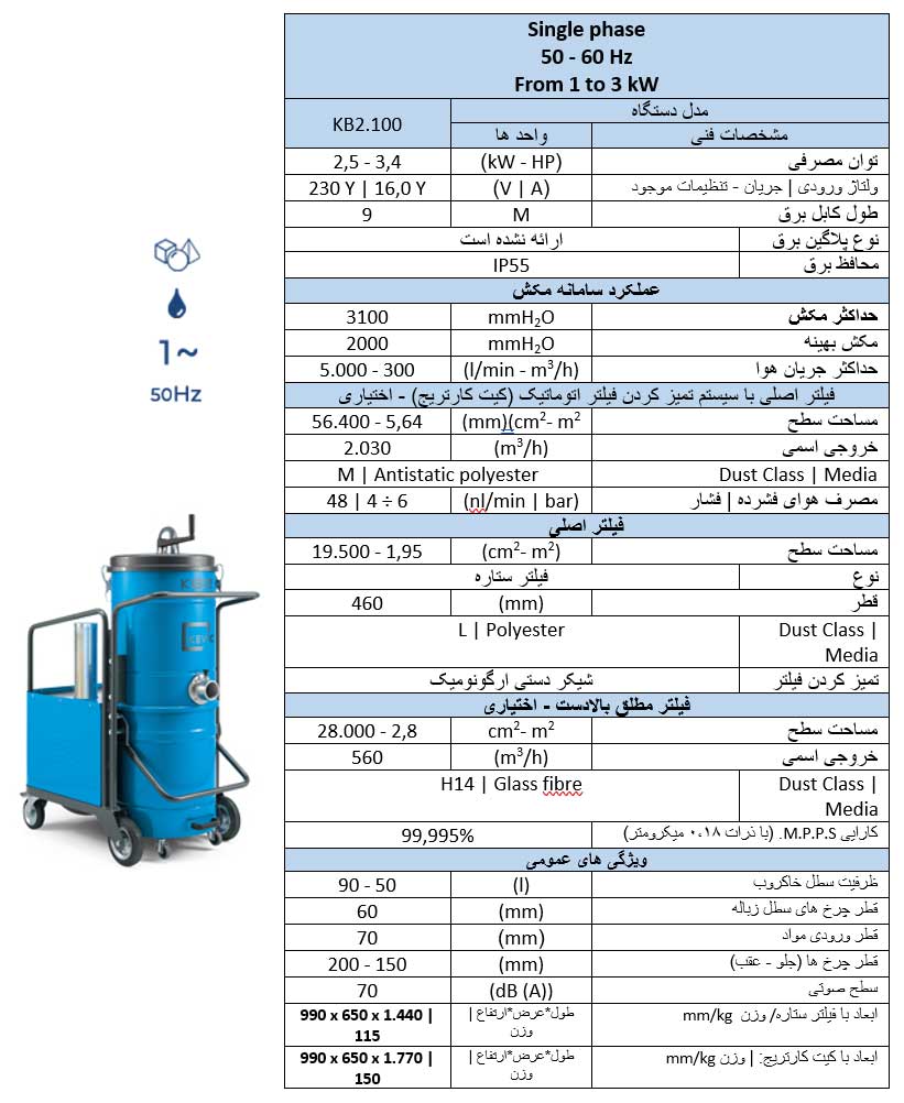 مکنده های صنعتی تک فاز، رده BLUE LINE تولید شده توسط کمپانی Kevac دستگاه هایی بینظیر قدرتمند ، بی صدا ، قوی و همچنین دارای واحدهای خلاء عایق صدا شامل توربین های موتور خنک کننده با خروجی بالا می باشند.